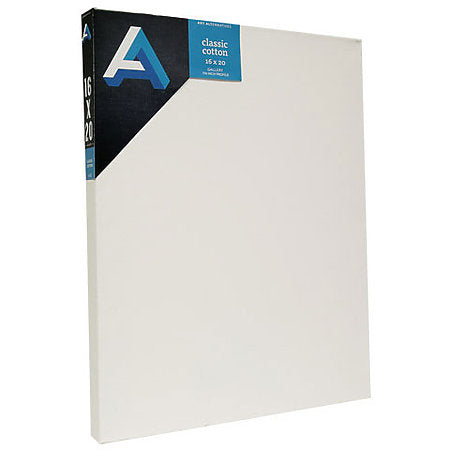 An all-purpose canvas, Classic Cotton Stretched Canvas is great for traditional painting techniques as well as mixed media, aerosol art, home decor and craft project and is suitable for use with all acrylic paints, oil paints and other wet or dry media. The unbleached 5 oz. cotton duck is primed with acid-free acrylic titanium gesso to a finished weight of 9.5 oz. and stretched around and back-stapled to kiln-dried solid pine stretcher bars. Sizes with a dimension of 24" or longer are braced for additional support. Studio Canvases have a 3/4" deep profile.