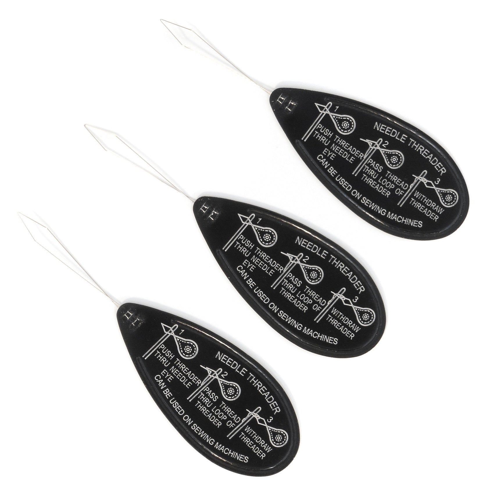 One of those tools you can never have too many of! The larger than average teardrop handle of this Dritz threader makes it easier to hold and maneuver while you thread your needle. Suitable for both hand and machine needles. Line art instructions printed directly on handle for easy reference. Easy to hold teardrop handle. This package contains three (3) needle threaders.