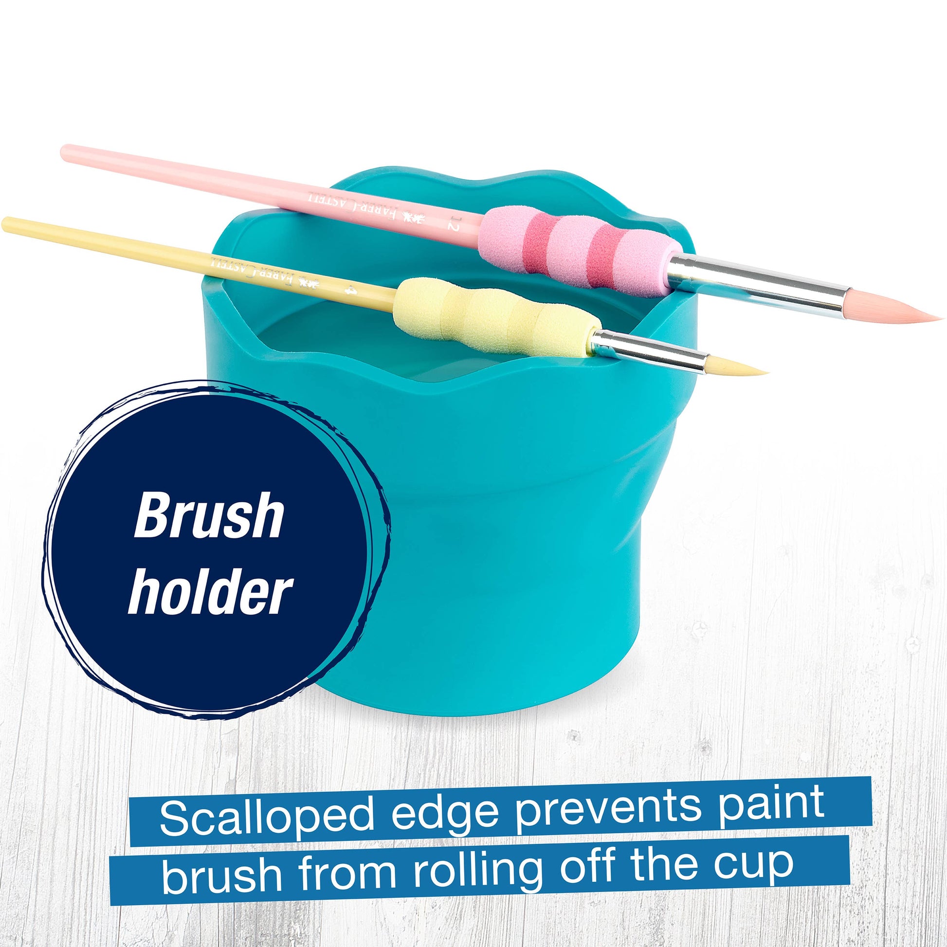 The perfect "on-the-go" tool for all your watercolor projects. This soft cup collapses for easy storage and holds an ample amount of water when full. The rippled design keeps brushes and tools from rolling away.