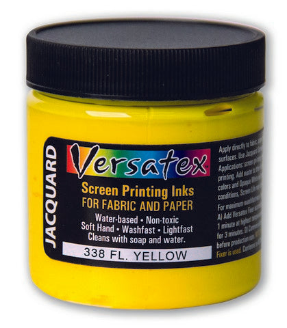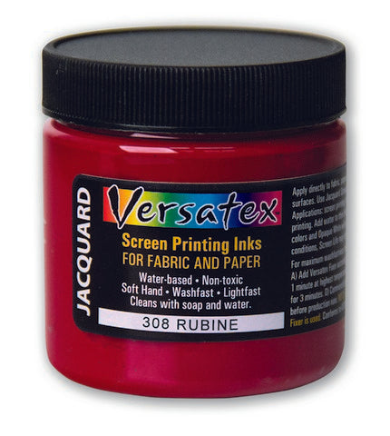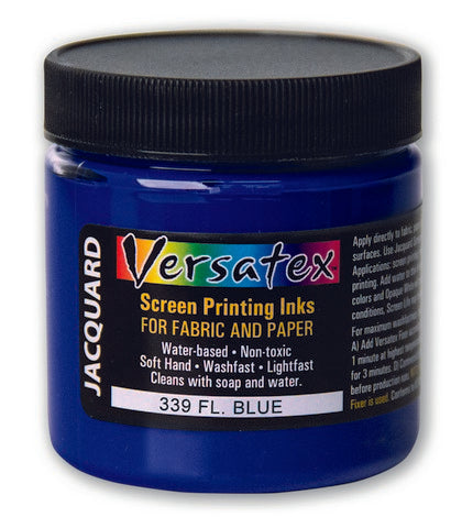 Designed for commercial silkscreening this printing ink is heavily pigmented and permanent. A thick and creamy consistency makes it desirable medium for creating on textiles, as dyes for batiks, silk-screening, stenciling or block printing. It will not change the texture and softness of your fabric. Versatex colors are intermixable, water soluble, somewhat transparent and work best on light fabric. It's very effective on heavy canvas or filmy blends and may be brushed freehand directly on fabric. Colors are deepest when applied at packaged strength and become permanent when heat set properly. Extender may be added for pastels and translucent overlays. Mix colors with white for opaque pastels. Overlapping pastels yields new shades. Versatex will effectively print over light tones but will not hide dark tones.