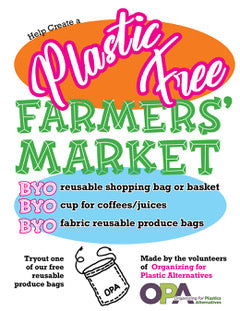 Brought to you by Organizing for Plastics Alternatives (OPA). Make produce bags to offer as gifts to shoppers at farmers markets to hold their produce items instead of plastic bags. We aspire to start shoppers on the path of reusable containers. This is an all volunteer operation and we are using donated fabrics. Participants are welcome to donate any fabrics they might have.