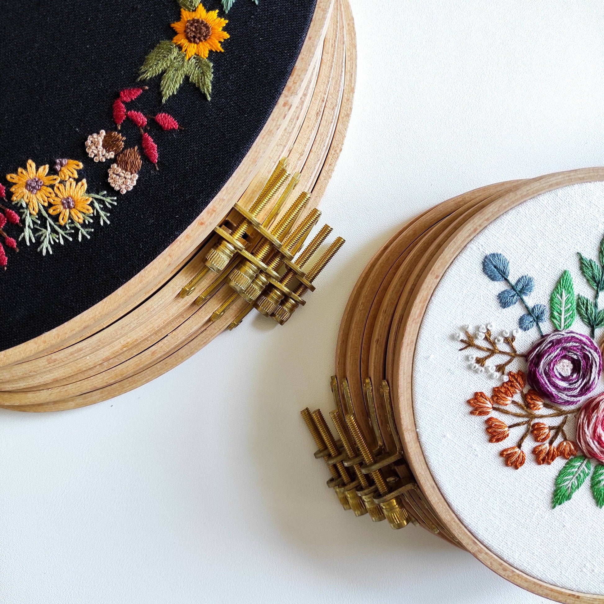 These hoops are made from premium quality Beechwood. They are perfect for all the needle work needs. Their smooth and sturdy construction ensures a comfortable grip while effortlessly holding the fabric in place. Please be aware there are slight variations in sizes within each hoop. Inner hoop size: -3 inch hoop (~ 7.5cm) -4 inch hoop(~ 10.5cm) -5 inch hoop(~ 12.5cm) -6 inch hoop(~ 15.5cm) -7 inch hoop(~ 18cm) -8/8.5 inch hoop(~ 21cm) -9/9.5 inch hoop(~24cm) -11/11.5 inch hoop(~28.5cm) *Thickness* Regular: 0.3" (0.8 cm)