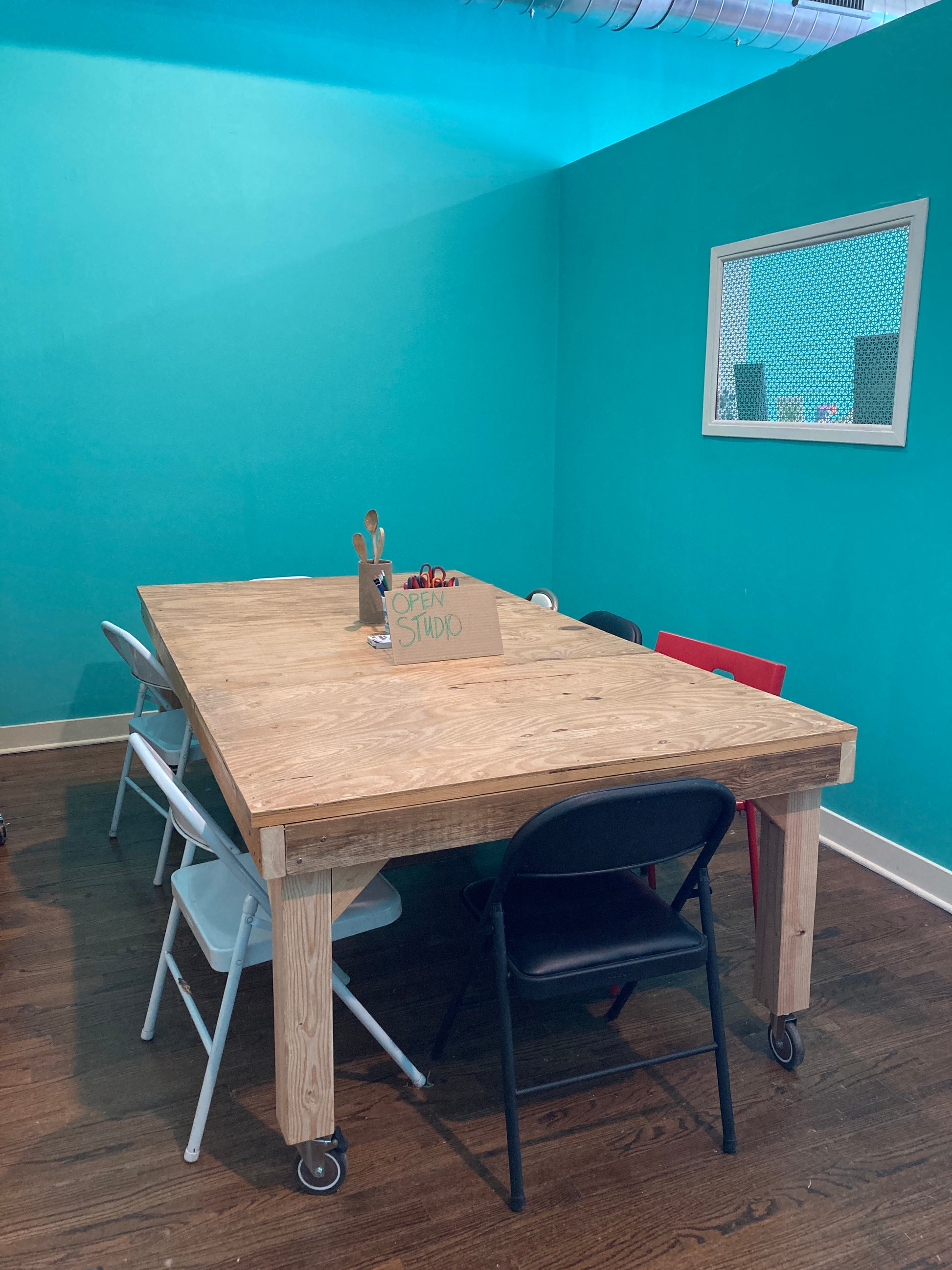 I have some basic supplies like scissors, glue, collage material, cutting mats, xacto knife, glue gun, etc. If you are looking for something specific, just shoot me an email, it's very possible I have it. There is a utility sink & a tiny private bathroom you can use while you're here.