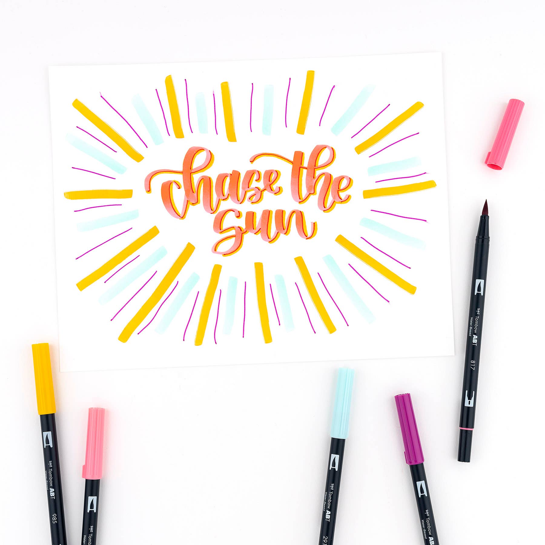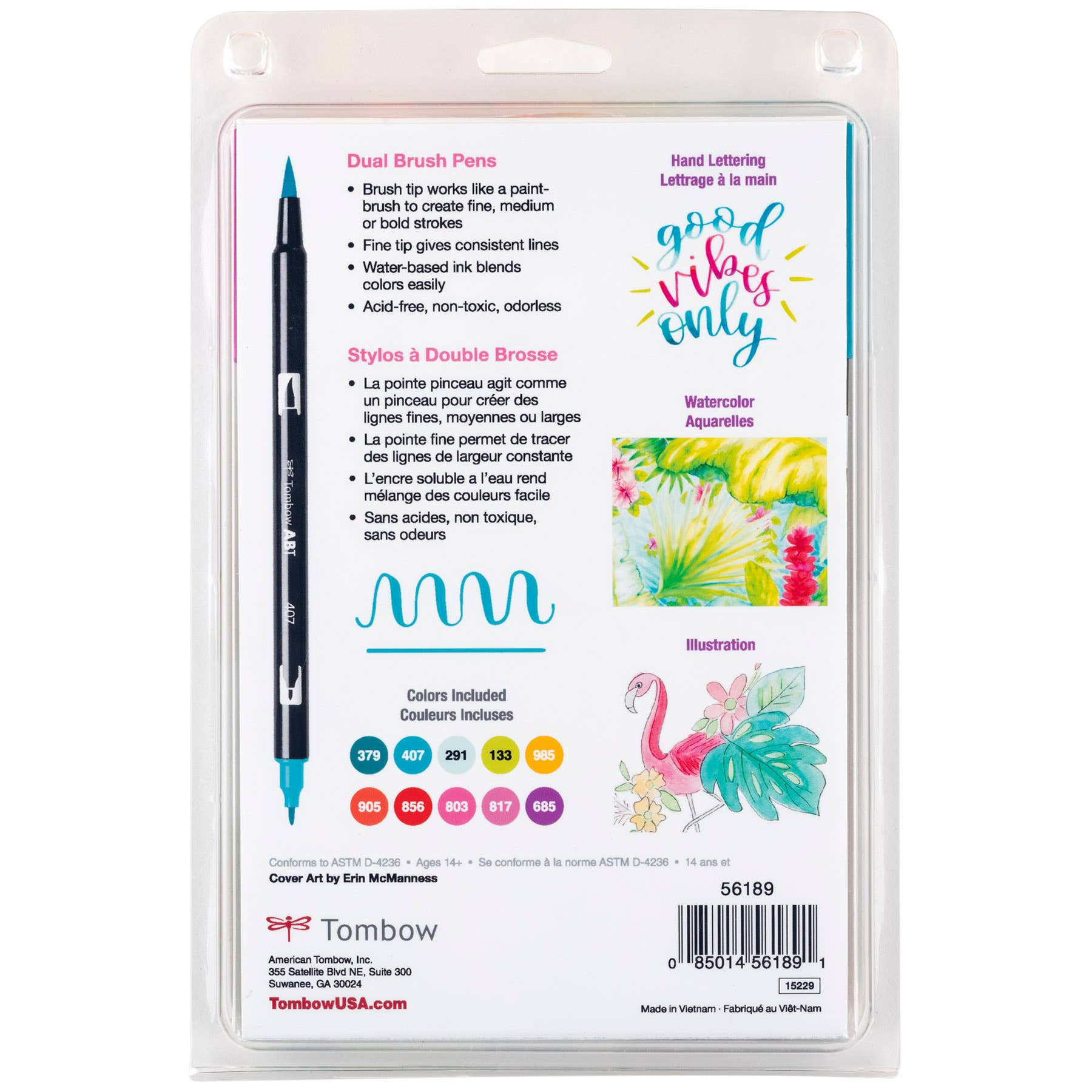 New, updated color palette! Set of 10 colors. Dual Brush Pens feature flexible brush tip and fine tip in one marker. Brush tip works like a paintbrush to create fine, medium or bold strokes; fine tip gives consistent lines. Dual Brush Pens are ideal for artists and crafters. The water-based ink is blendable and the resilient nylon brush retains its point stroke after stroke. Colors include: 379 Jade Green, 407 Tiki Teal, 291 Alice Blue, 133 Chartreuse, 985 Chrome Yellow, 905 Red, 856 Poppy Red, 803 Pink Punch, 817 Mauve, 685 Deep Magenta. Colorless Blender Pen not included.